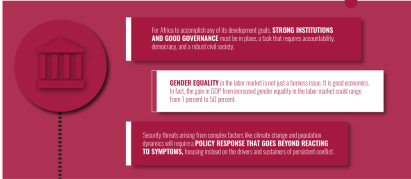 It is unlikely that the continent will be able to successfully and effectively implement and achieve the Sustainable Development Goals in 2030 or Agenda 2063 unless institutions are reformed to enforce good governance undergirded by the rule of law. The policies outlined will help the region accelerate good governance and support its economic transformation.
